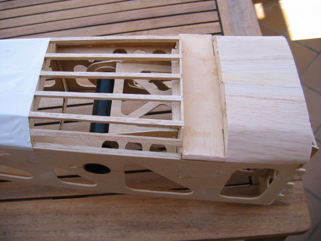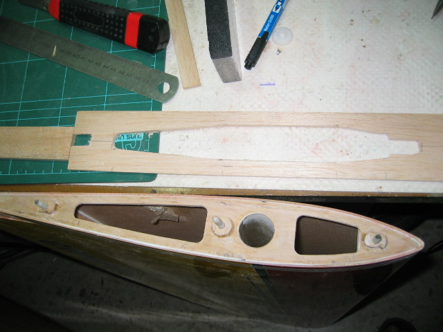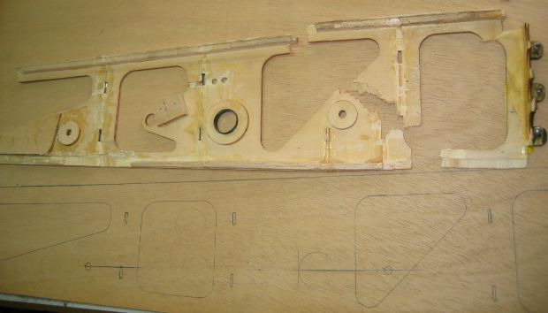 Las Alas miden un poco mas que las anteriores y sobre todo tienen mucha mas cuerda y alerones, así que como tengo que rehacer medio fuselaje, aprovecho y lo alargo también unos 4 cms.