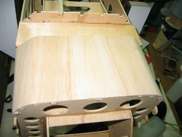 Al colocar las alas tengo varios milimetros de holgura (hasta 6 mm) en algunas partes. Por lo que me veo obligado a cortar por lo sano en el ala y pegarle una tabla de balsa sobre la que poder larle la forma del lateral del fuselaje, un poquito de fresa un poquito de lijadora y unos gatitos y en cuanto seque a perfilar y a desbastar hasta que encaje.