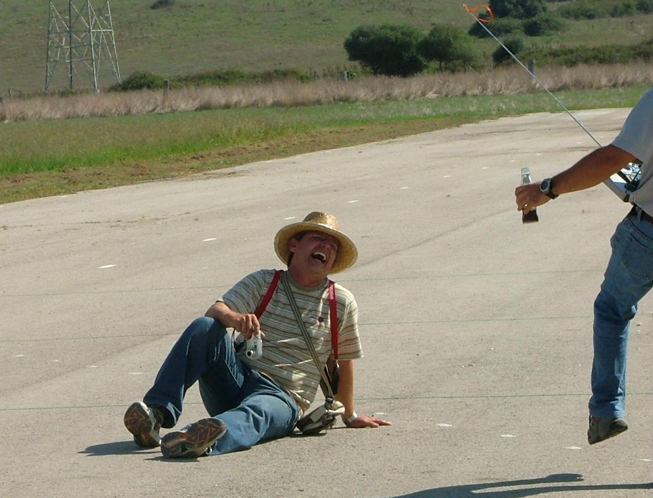 Los que estabamos detras por lo menos aguantamos la compostura y no nos tiramos al suelo, ademas tu estabas de frente a el, todavia peor, la foto es bien clara, Sergio aguantando el equilibrio a la pata coja, la coca cola en la mano, los mofletes como los de un trompetista llenos de liquido que no pasa, el avion a su bola y su colega/ayudante por los suelos descojonado. :shock: