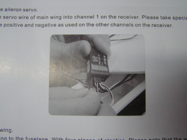 jijiji y yo coloque en el medio , otra cosa en la ala estan los cables para conectar por el avion para los alerones, pero no muestra derecha o isquierda , tendria que conectarlos y provar o si no que
