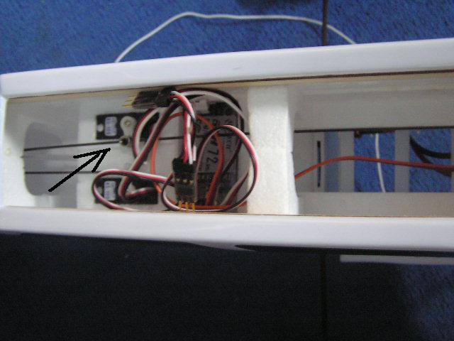hola ablerthamon . aqui te dejo la foto y si la varilla de metal si es para arriva tambien hay una maderita que va enchufada y el pegamento son dos y la otra foto donde se conecta los servos del aleron ensima la polaridad que ya escuche que si se conecta al reves se quema o algo asiy la otra foto es sobre cargar la bateria , pero bueno bamos por parte jiji