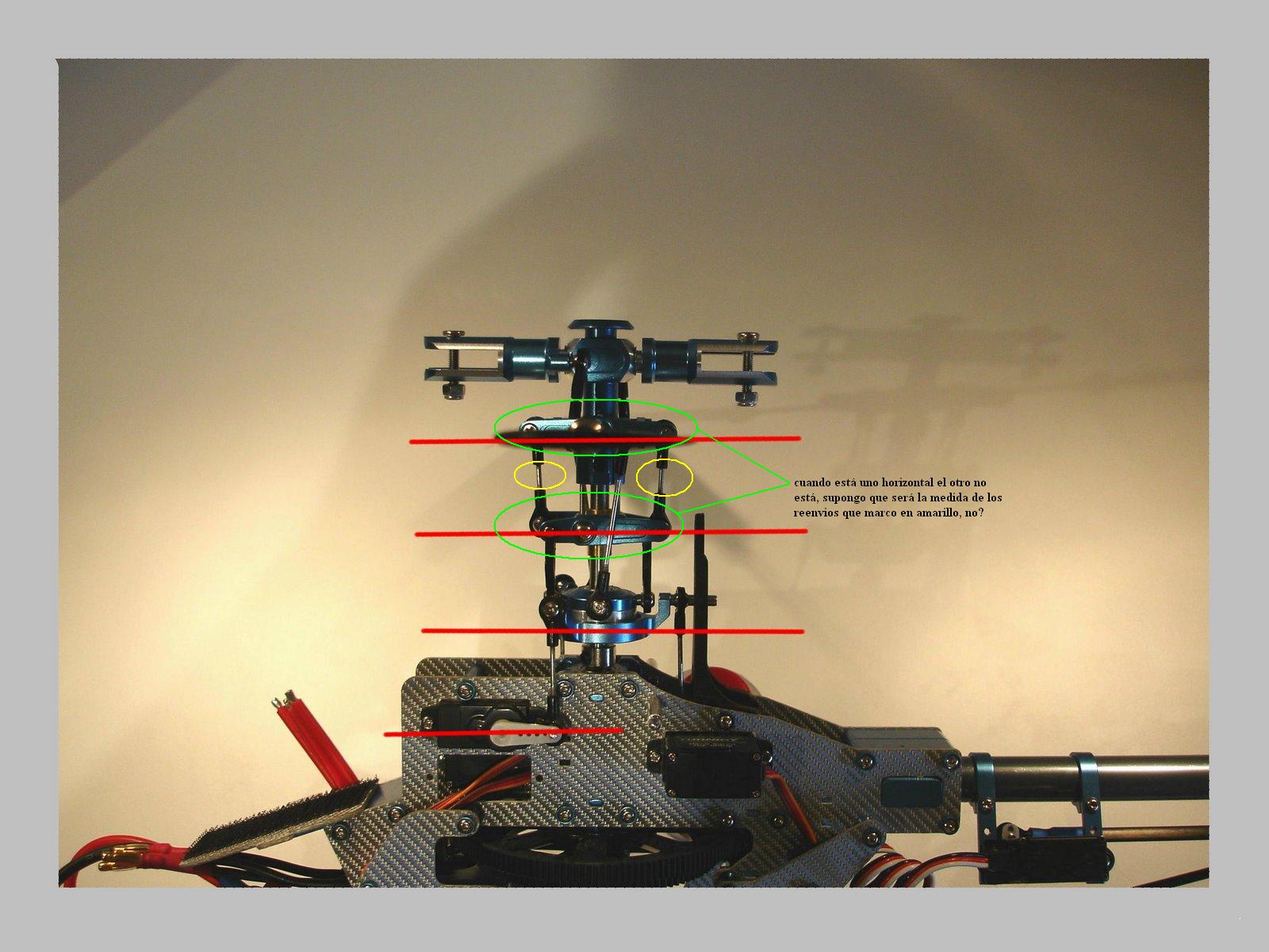 DOCTOR BACTERIO escribió:Si,tienen que estar horizontales.¿Has comprobado las barillas más largas?,las interiores del plato que van a las tijeras de los portapalas,dentro del marco de la flybar.