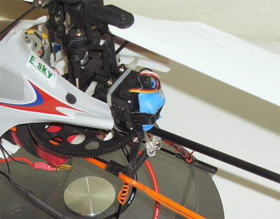 En cuanto a lo del avisador, lo he puesto montado a caballo en el tubo de cola y pegado con cinta de doble cara a los dos servos traseros. En el momento de la foto se estaba pegando y estaba sujeto con cinta americana.
