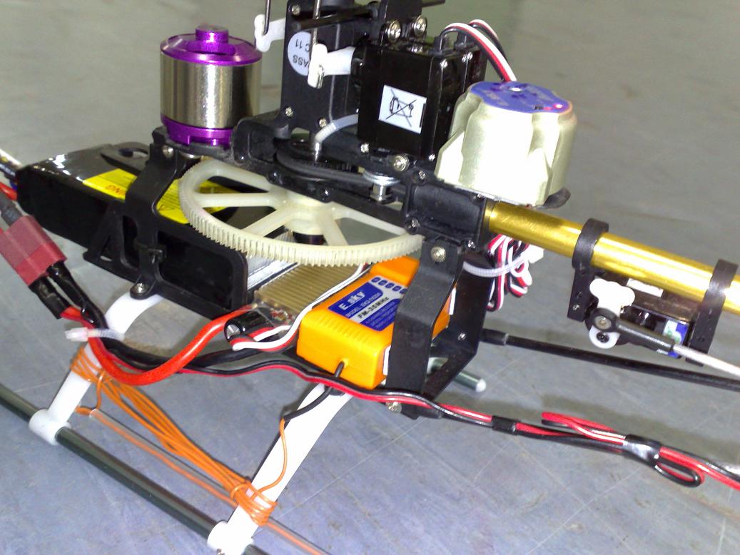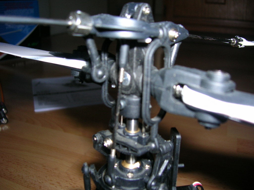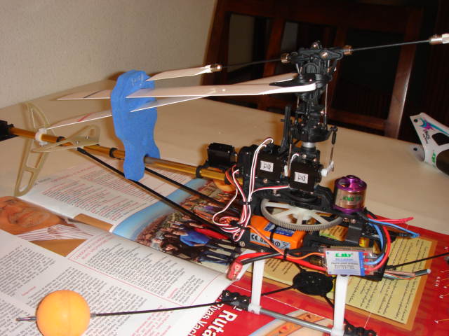 Ahora con el nuevo brushless asegurate de equilibrar bien las palas y mantener en buenas condiciones el rotor ya que va a dar bastantes mas vueltas por minuto. Tambien procura no llevar mucho paso en las palas principales porque pasarias de tener el heli a 30 centimetros del suelo a que salga disparado como un cohete.