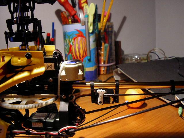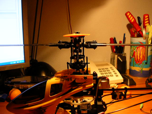 Hasta aquí todo bien, he hecho 2 estacionarios y la verdad es que la diferencia ha sido grande, o peor de todo, que al tercer intento el heli se ha descontrolado, es decir, que son el stick del motor abajo, el heli ha empezado a revolucionarse y a hacer lo que quería, con el consiguiente destrozo que os podéis imaginar. Es la primera vez que me pasa esto, no sé si achacarlo a interferencias, o a algo mal montado, o a que no funcione bien alguna pieza...