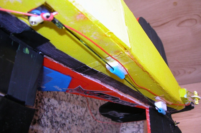 Vuela estupendamente bien,al final me ha salido más grande de lo esperado,mide 97cm de longitud y 105 de envergadura y debido a eso se revira el fuselaje en los giros bruscos y las alas flexan,por lo que toca reforzarlo tanto en el fuselaje como en las alas siguiendo los sabios consejos de los maestros del grupo.