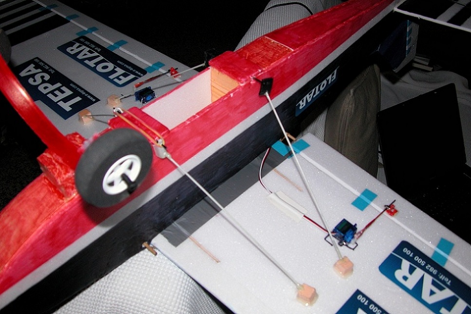 Arrea Miguelangsos... no te has quedado corto en refuerzos... Yo como en el primer vuelo las alas flexaban (solo metí unas guías de contrachapado de 3mm en la unión, y en todo el largo una varilla de carbono de decathlon de unos 3-4mm y una tira de madera de balsa de espesor 6mm y de 10mm. de ancho) opté por añadirle unos tensores con varilla de 2mm que van del ala a la parte inferior del fuselaje unidos con gomas, y el resultado es cojonudo, las alas quedan muy rígidas.