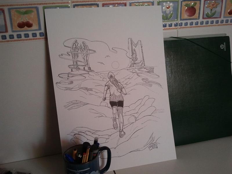 En otro orden de cosas el tema de la confección del cartel de la Media Marathon Rota-Chipiona ya está muy adelantado y practicamente el trabajo de tintas en blanco y negro para las camisetas o sueters de los corredores cuando lleguen en meta está terminado, pero me queda todavía la fase del color para el cartel en sí...