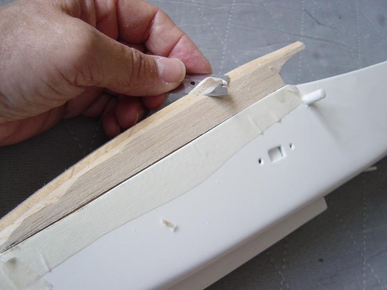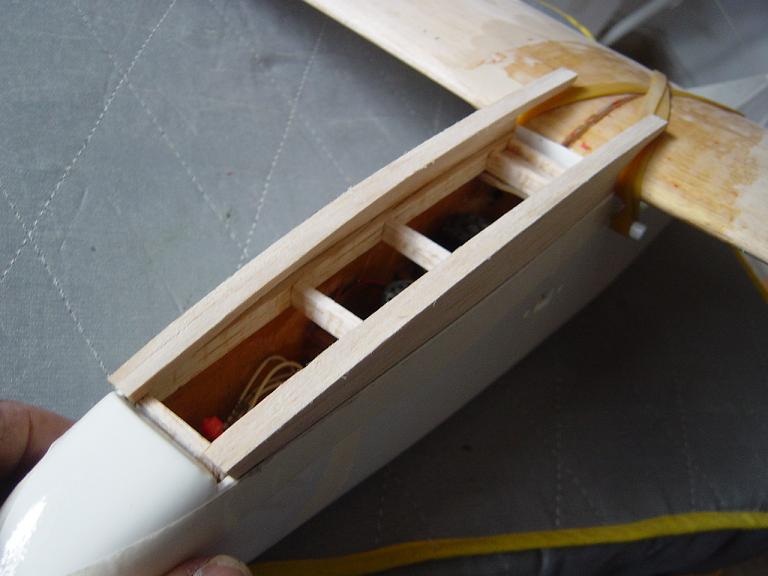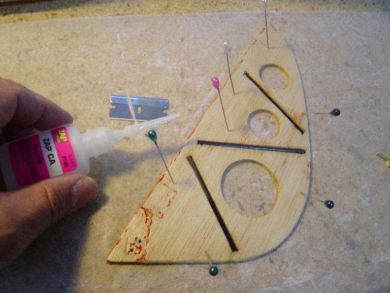 Por otra parte personalmente nos gusta reforzar un poquito el area en donde colocaremos los horns en las superficies de cola, así que hemos colocado en el lugar correspondiente unos triangulitos de organí adheridos con ciano fino a la estructura.