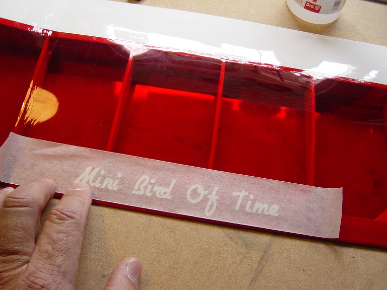 Nuestro amigo Melchor de Chiclana con su plotter de corte nos ha realizado unos rótulos con el nombre del Pajarito y por mi parte he puesto realizado con tijeritas y cuchilla :) :) :) el dibujo del Pajaro con el logo del L.S.F. al fondo como en la decoración original de la caja en donde se comercializaba el Mini Bird...
