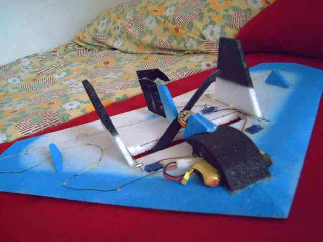 Empece con un TORNADO de artesania latina, y la verdad es que me ha ido muy bien con el he tenido lindas jornadas de vuelo facil con el, pero ya me aburri. Vi el otro dia volar un super fly y me enamore de el (no se si lo conoceis) es una delta con un motor sin escobillas y dos mini servos, evidentemente la diferecia de modelos es grande, bueno el caso es que me tire de la moto y he encargado un pack completo con todo lo que nesecito, Hitec Laser 4 channel radio, Berg Microstamp 4L Receiver and (2) BMS 380MG servos, Castle Creations Thunderbird 18 amp brushless speed control, Lithium Polymer 1200 mah, 2 pair Micro Deans Connectors ademas de el modelo pre-cortado