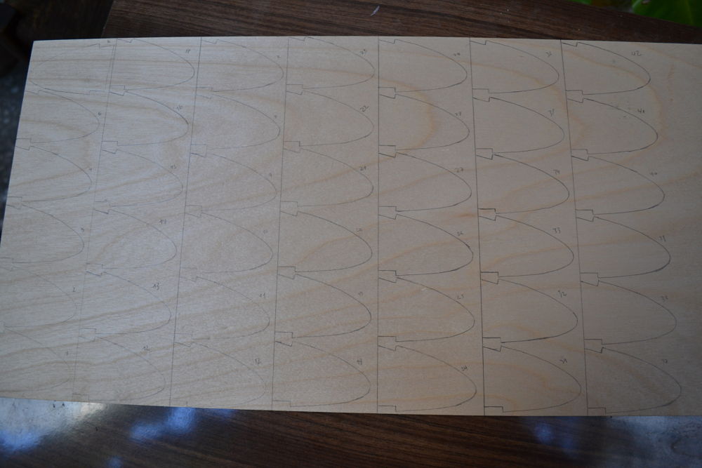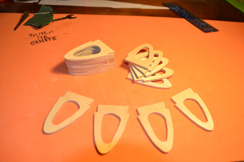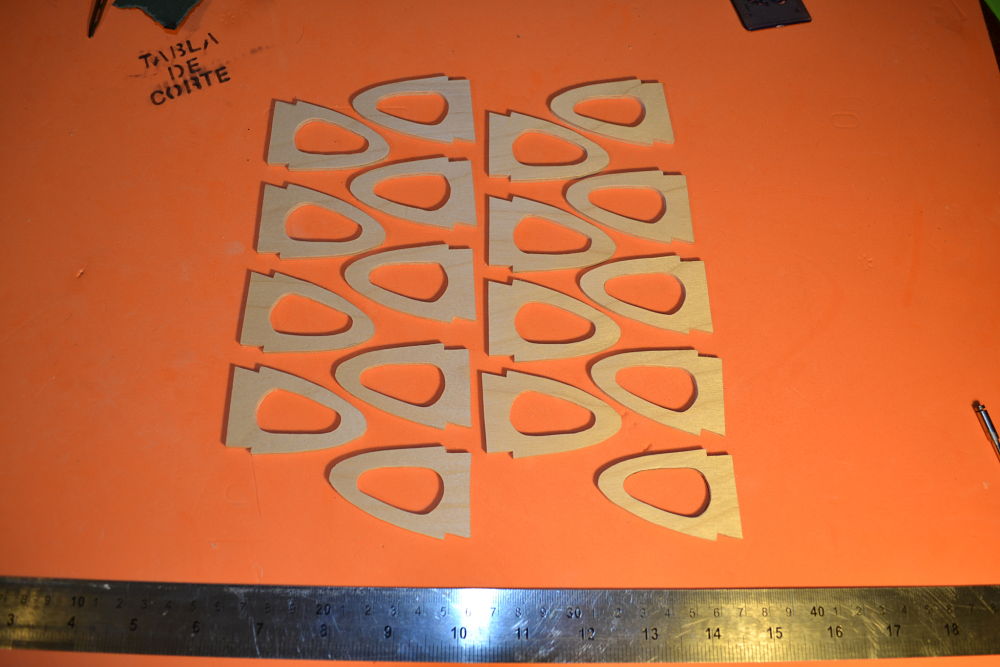 Aquí va la plantilla del Borde de ataque en contrachapado de 3mm, son 42 en total, y luego... a cortar!!!