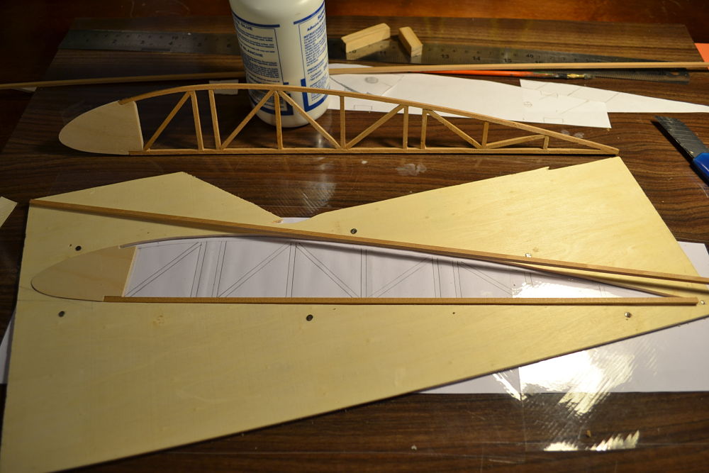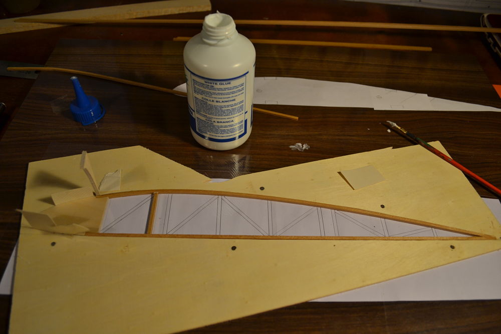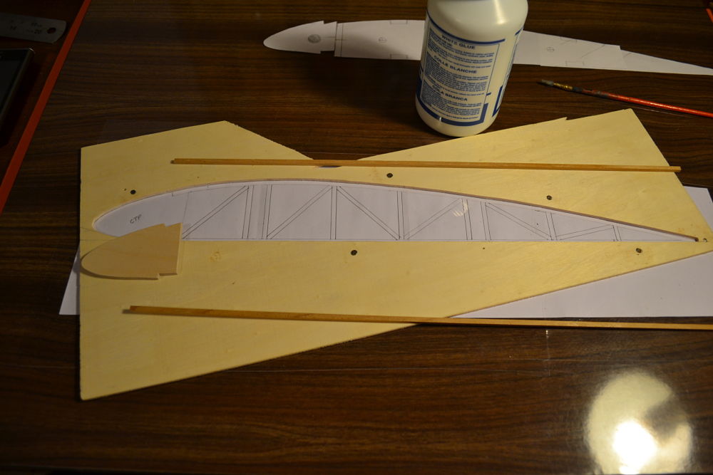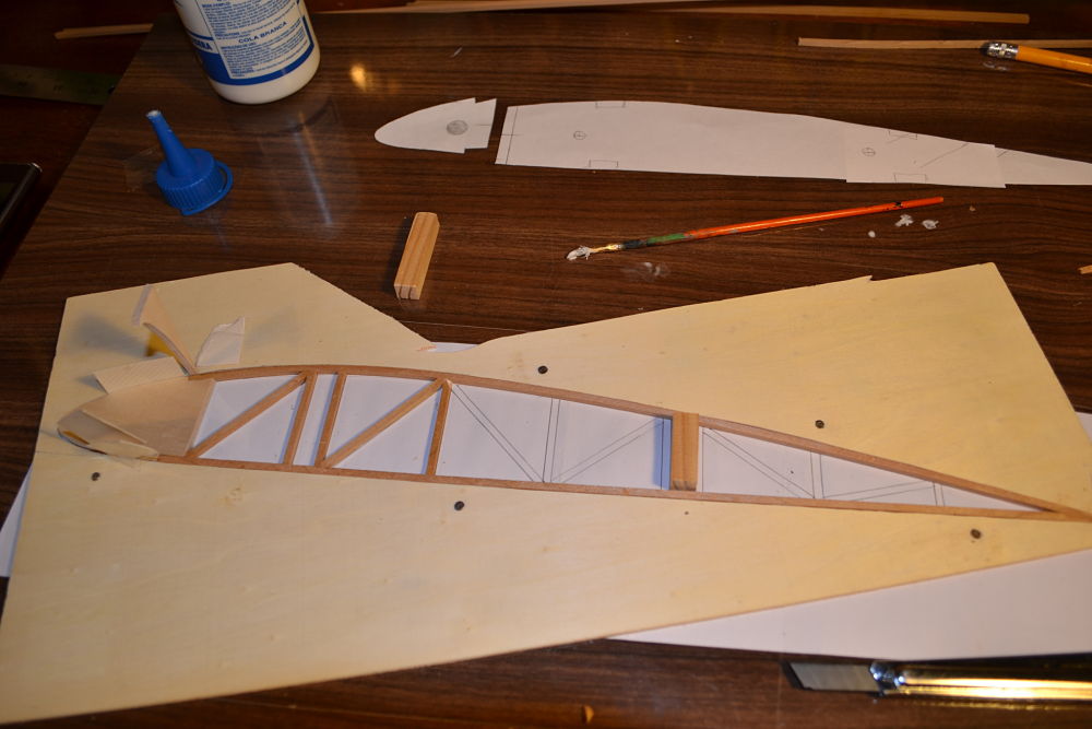 En algunas zonas, como aquellas en las que se engancharán los tirantes de las alas llevan refuerzo de contrachapado de 3mm, algo grueso, pero el peso al final ha quedado bien.