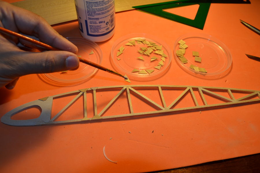 SUKOI, lo del 0,4 del contrachapado para las uniones lo pensé porque tengo un panel que me costó bastante caro y quería aprovecharlo, pero despues de probarlo queda muy grueso para las triangulaciones, así que a ver si encuentro la chapa de Ocume porque he estado mirando por Sevilla y no doy con ella en las tiendas especializadas :? .