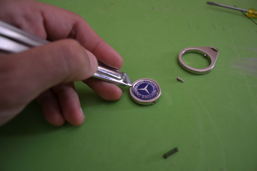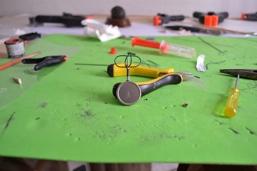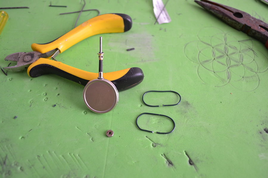Como veis el sistema es bien sencillo, con una aguja se perfora facilmente el cascabel, se pega o suelda y se recorta el sobrante. Este anemometro lleva 3 cascabeles concretamente, que irán pintados en negro