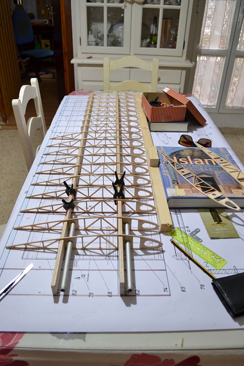 Gracias Taito y Miguel Gil por escribir. Seguramente teneis toda la razón con lo del grosor y tipo de madera elegida para los bordes de ataque, asi que me lo apunto y para el proximo os hago caso. Realmente no cambio ahora porque ya he cortado mucho, y a mano es realmente duro!