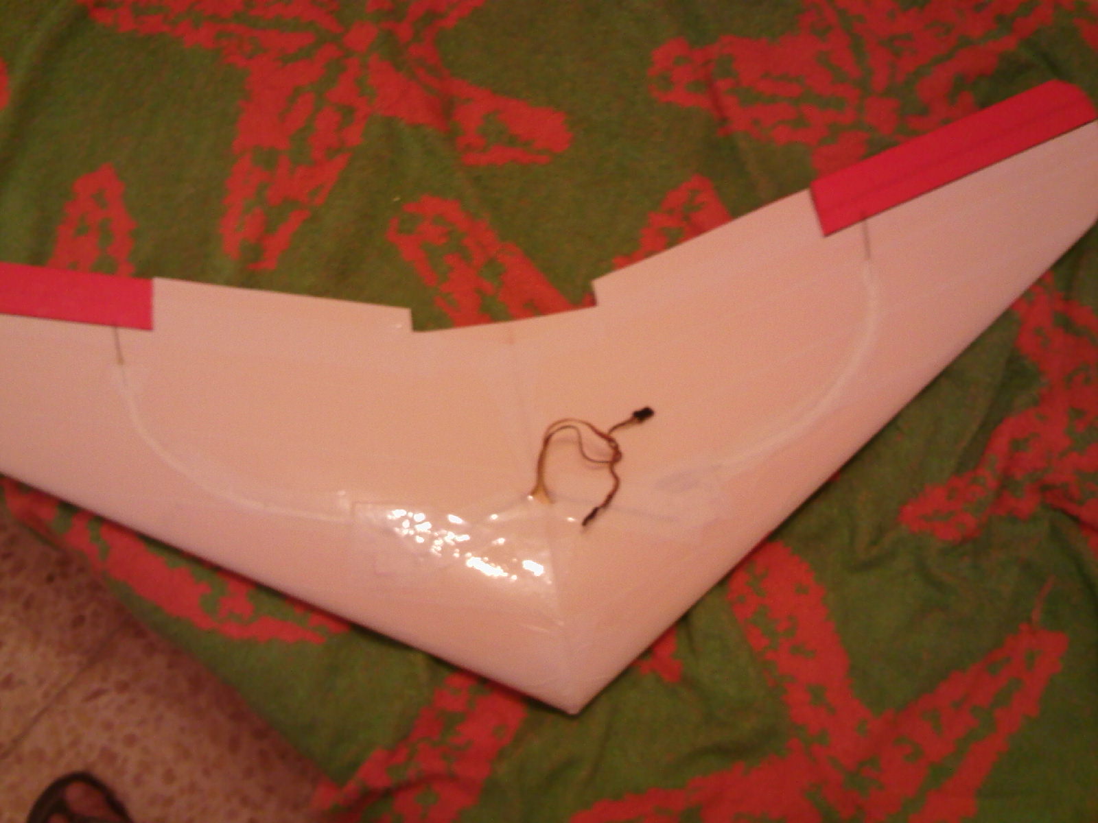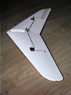 En cuanto a las fotos a ver si puedo hacer alguna esta semana. Por ahora es como la de la foto pero sin cabina ni motor, parezido a una Zagi eso si, sin derivas, con los marginales redondeados y con los alerones integrados en el ala y solo la mitad de la envergadura.