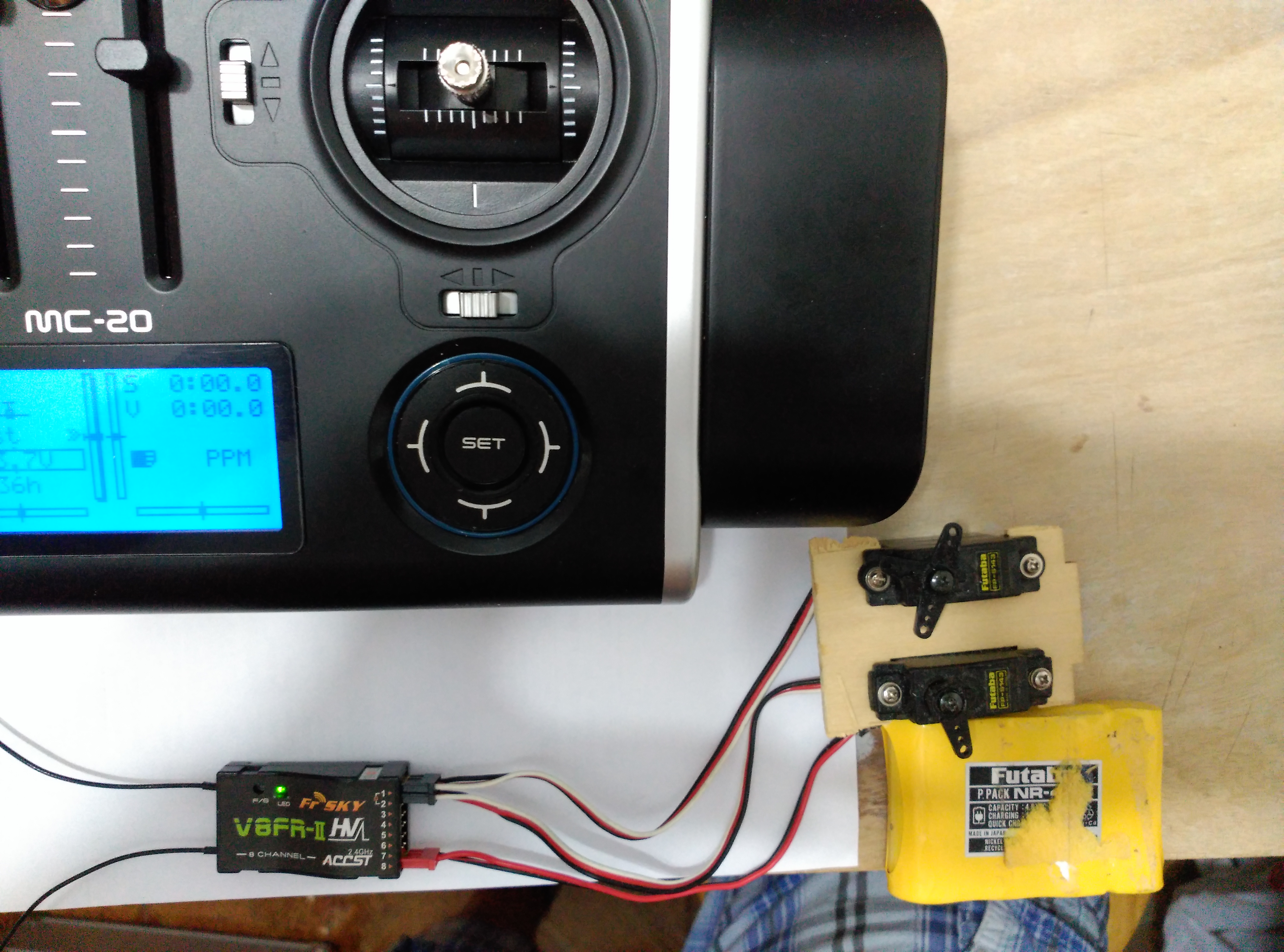En este caso hemos conectado a la MC-20 con el DHT de Fr-SKY como módulo de emisión y receptor V8FR-II.