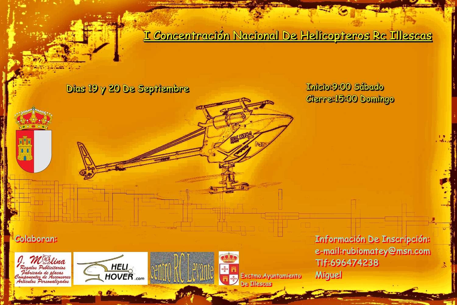 Hola,con motivo de fomentar el vuelo 3D en la zona centro vamos a organizar nuestra primera concentración de helicopteros con cabida para todos los niveles de vuelo sin ningun afán de competición,con el unico fin de divertirnos y pasar un buén fin de semana,espero que todos los que conozco y sobre todo los que NO conzco asistais al evento os garantizo que nos lo vamos a pasar bién y ya que estamos en la zona centro a la mayoria os resulte facil llegar.Mas adelante iremos poniendo información sobre la ubicación de nustro campo de vuelo asi como la de los alojamientos disponibles para ese fin de semana.