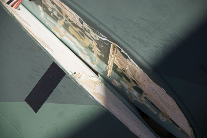 Yo retiraria el refuerzo viejo.... cajenado por el interior del ala...y realicira uno nuevo reforandolo con unas hebras de carbono.