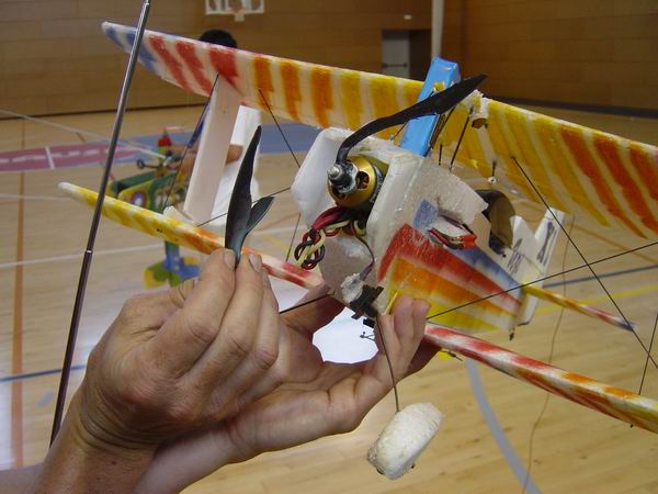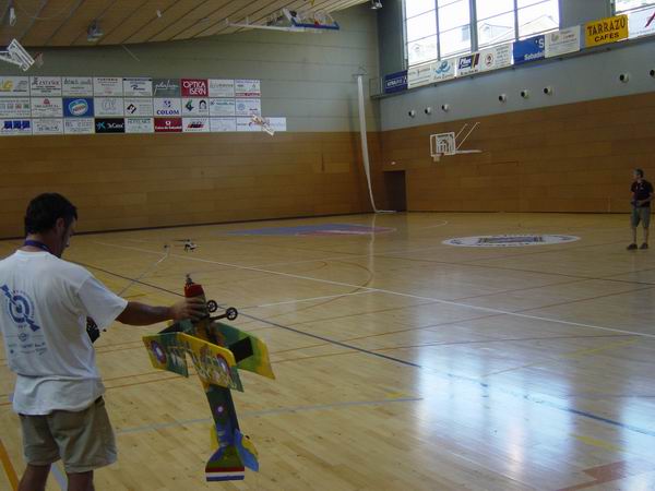 Todo ha estado genial , hay que ver que organización y que campo, sin olvidar lo del indoor, que también fue la leche.Va a ser difícil,mas bien muy difícil superar este encuentro. Creo que ninguno habíamos volado en espacios cerrados. A destacar Elio que nos sorprendió con sus perfectos torque rols y ruedas de toneles con el quasar.(sin hablar después con la turbina,menudo control,). Entre Miguel y yo rompimos como 8 o 9 helices en media hora ,menudos porrazos, es que semos muy brutos. Y el pobre helicóptero también sufrio, esta destrozao el pobre. Después de un buen tortazo contra la cancha, apagué primero la emisora. (no lo hagais nunca, el heli se vuelve loco y cualquiera lo coge después, hasta que no se rompen las palas no hay por donde agarrarlo).