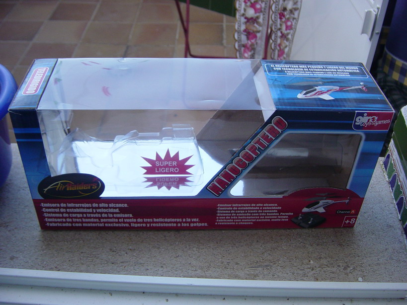 Bueno continuando con este hilo, esta tarde me he pillado el nanocoptero, y en un par de baterias se le pilla el truquillo, desde luego no es un heli de verdad pero te diviertes volandolo en el salon.