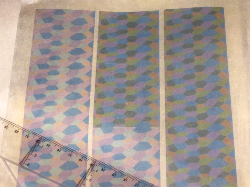 Para ello primero confecciono los polígonos, los he escalado con el Autocad, los he rellenado de color (con el CorelDraw) con unos colores aproximados y hago prueba imprimiéndolos sobre papel Japón blanco (bueno, sobre papal seda blanco, que el otro es caro y difícil de conseguir).