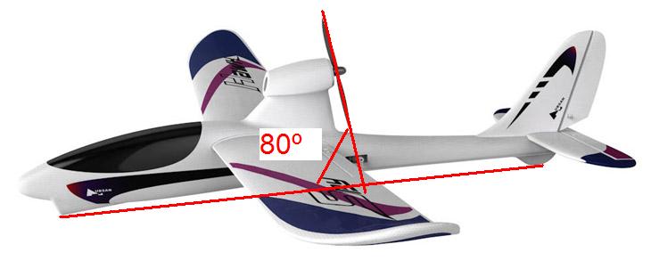 Soy nuevo en aeromodelismo y esta es una de mis dudas. Agradecería si alguno me podéis orientar en este asunto. Tengo un Huban Spy Hawk con el que me estoy iniciando y al que le estoy haciendo varias modificaciones. Veo que el plano en el que gira la hélice no es perpendicular respecto a la horizontal sino que forma un ángulo aproximado de 80º según he dibujado en la foto adjunta. Con esa inclinación de la hélice entiendo que hay un esfuerzo principalmente horizontal que hace que se mueva el avión, pero hay una pequeña componente vertical que empuja el avión hacia abajo. Quisiera saber por qué se tiene esa ligera inclinación en lugar de ser totalmente horizontal. ¿Es esto normal también en otros aviones?