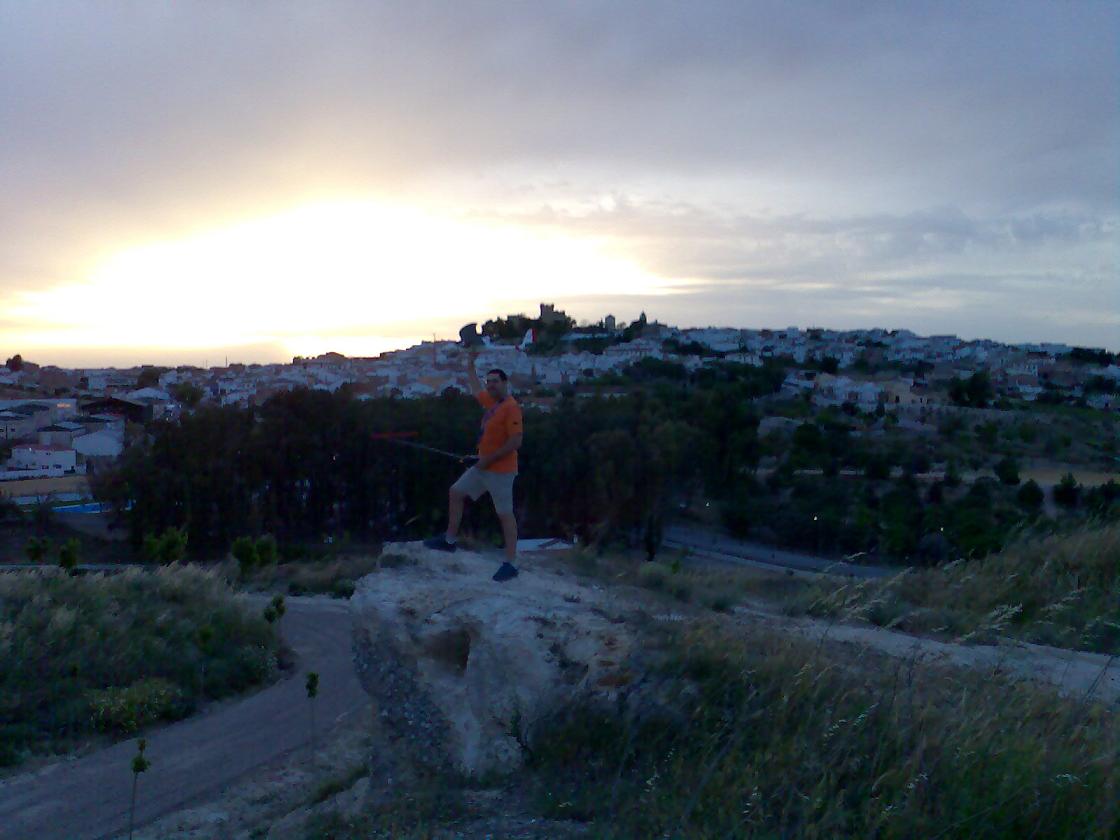 Aqui os dejo una bonita estampa de mi Easy con el atardecer detras y Montemayor con el Castillo de fondo. Esa tarde habia un aire del demonio, pero este Easy pude con todo, (lo intentamos con el de un amigo -de serie- y el viento se lo llevo al carajo luego no podia volver).