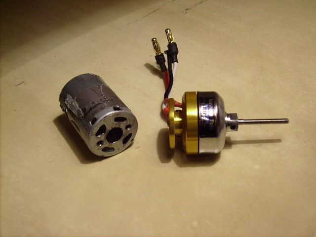 Bueno, ya he montado el brushless al Easy y como dije, ahi van las fotos de montaje. No queria, de momento, tener que subir el motor, asi que he utilizado la carcasa de un Permax 400 quemado por la 3s :) . Como el eje es largo, he utilizado una de las tuercas que traia el brushless para ponerla detras de la helice y alejarla del motor lo justo como para que entre sin tener que rebajar el fuselaje (hay milimetros de distancia, despues de la prueba, la helice habia hecho una raja minima en el corcho).