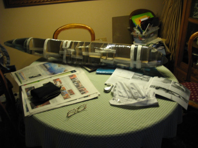 pongo algunas imagenes de los avances en el aparato. esta semana completo el fuselaje e incorporo alas y cola. la electronica viene en camino.