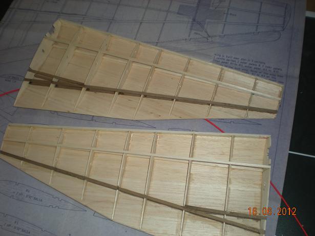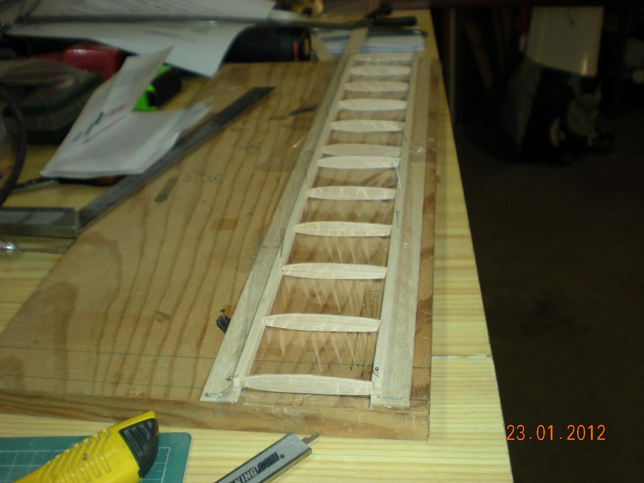 Bueno, despues de los saludos, paso a mostrar algunos avances. No han tantos como esperaba, pero en estas vacaciones he tenido que estar bastante pendiente del trabajo. Pero algo hemos avanzado en la construcción de las alas, he cortado todas las costillas y he montado parte del ala, pongo fotos: