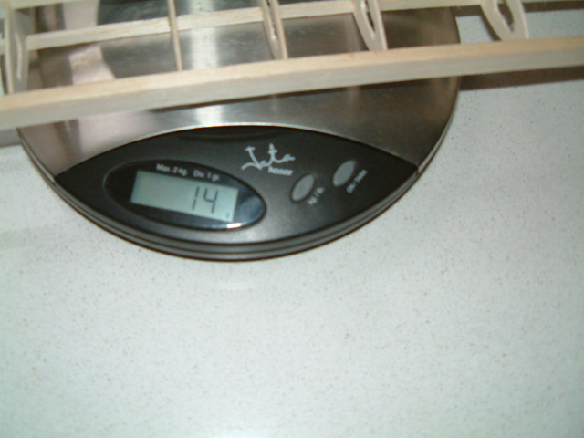 En el estado en el que aparece el modelo en las fotos pesa 770 gramos, con el Supertigre 46, silencioso, depósito y acabado, me relamo sólo de pensar en unos 1400 gramos, para un acrobático de su tamaño.