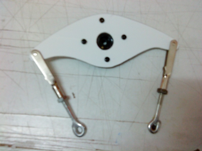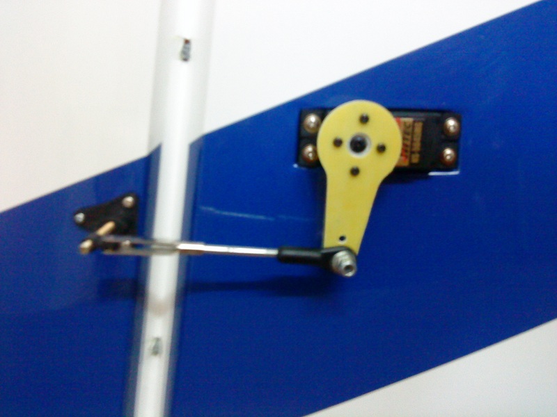 Varilla aprovechada para poner los cables y cruceta servo casera de aluminio.