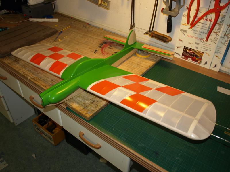 Por fin y antes de fin de año, todo un record para mi el pasado 8 estrenamos este proyecto de un día. El modelo sencillo, para su acabado he empleado material de los chinos. Tela de seda por 2 euros por dos pliegos para entelar. Estaba cansado de los boquetes en el ala con el papel y la verdad que me ha dado buen resultado. Entelado con novavia y con varias manos despues de tapaporos para muebles. Los colores tambien de los chinos a 2 eurillos por bote que en total he necesitado 6 entre naranja verde y barniz de acabado. Importante, la laca se va con el combustible, por lo que le di la mano de acabado con sintético satinado que le da una buena vista. Con colores de Tamiya se pintaron los adornos. El motor empleado un OS MAX FP 20 que funciona de escandalo, por supuesto que ningún descubrimiento.
