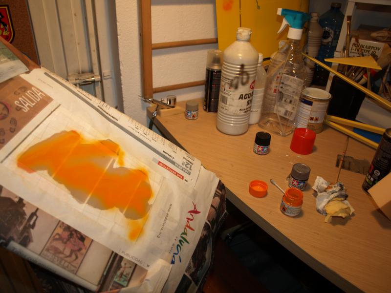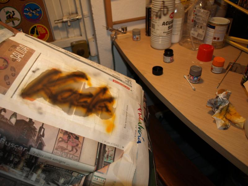 Las pinturas empleadas, aunque en la imajen aparece laca transparente, esta la sustituí por sintético satinado Tkrom