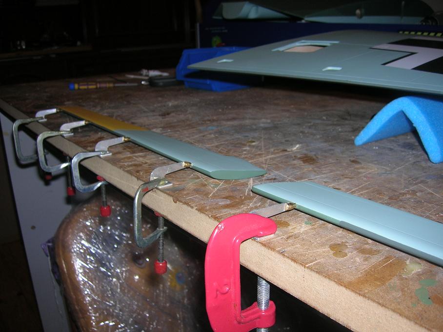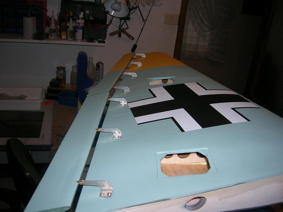 Casi todos mis aviones los comienzo por las alas ,en este caso empece por avisagrar y cablear cada semi ala antes de unirlas ,asi se manipulan mejor que enteras ...
