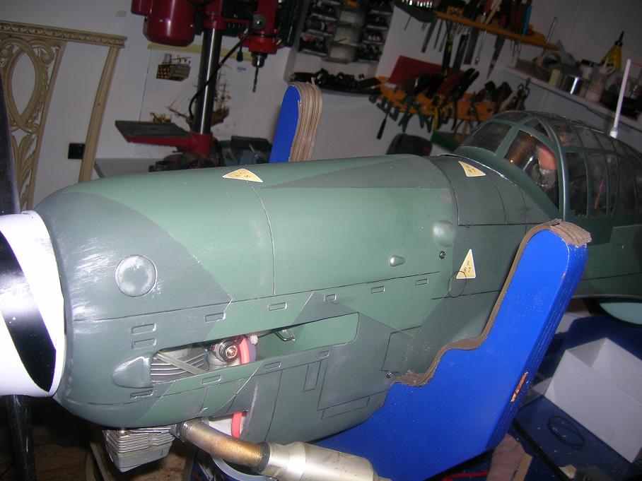 hola a todos espero que no le pongais mucho peso con las bombas jeje.en su tiempo hice uno tambien . las trompetas de son faciles si se tiene idea se trata de dos cilindros rozandose y ahuecados que hay que hacerlos girar y en el avion es facil solo hay que colocarles una helice que os parece. el que hice tenia el escape funcional a igual quel real y la cabina movil me encantaria volver a hacer otro jeje