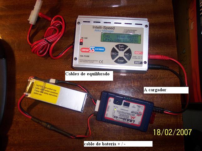 De lo que no esoy muy seguro, es de que para balancear, sea necesario conectar los hilos + y - (esos a los que hay que soldarles el conector). Quizás nos lo pueda confirmar Bote, da la impresión de que él si se sabe las instruccones.