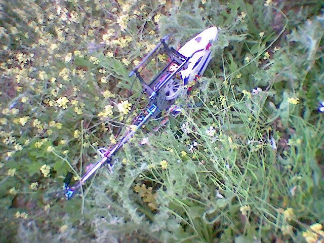 Consecuencias: 1 pala rota, eje un poco torcido, 1 patin roto, canopy magullada, tubo levemente doblado y corona comida...