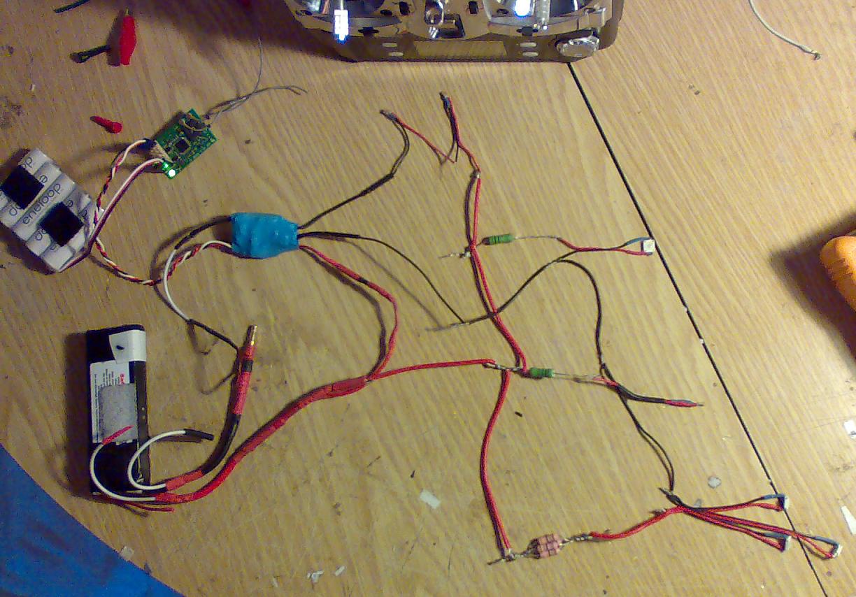 Ah vale, pero ya quisiera yo que mis leds consumiesen como los estandar de toda la vida. Si es que tengo pendiente el hablar sobre ese circuito, pero los valores son muchisimo mas bajos, 10 ohm 3W, 4´5 ohm 8W, ( 4 de 18 ohm 2W en paralelo). pero es que duros a 4 pesetas , no hay si tu quieres que se vean con sol , ( yo he hecho muchas pruebas) , olvidate de los leds de todas la vida, y aunque te digan que son de alta intensidad , olvidate. Si yo los de 2 pines y alta intensidad (los transparentes, pero que dan luz de color) los tengo aqui en casa, y no los he montado, XQ yo no me voy a molestar a instalar unos leds su cableado, hacer su controlador, para que luego no se vean en vuelo.