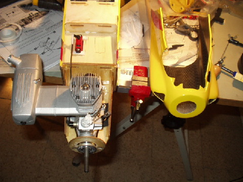 el peso total del avion con el 120 y escape con alargador, helice 16x10, cono d aluminio y servos con piñones metalicos me ha pesado 3.500 sin gasofla claro tambien le he puesto bomba perry, para ponerla solo tienes que dar un taladro en la parte del carte yiene en todo el centro un teton para hacer esto y luego roscar el taladro, lo malol es que la bomba viene con una toma que no es metrica y tendras que comprar un macho Wilor o como se escriba, tambien puedes comprar una toma de metrica 4 y rosacar a esta medida