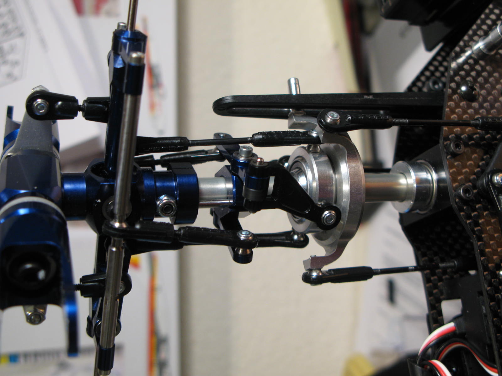 hola yo para ajustar varillas he puesto todo ha 90º servos incluidos, y con el plato nivelado y mitad de recorrido las palas tiene que estar ha 0º