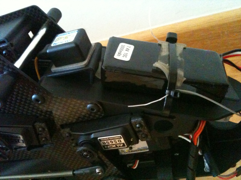 Hola, pues nada,que ayer me llego un ubec y unas lipos para el heli,como soy muy burro :D he pedido unas 2650 2s 30c y son un pelin largas,13.5cm,habia pensado colocarlas debajo de la bandeja de servos (debajo de donde va el receptor),el heli es un raptor 50 titan,pero la parte trasera de la lipo queda muy cerca,3 o 4cm,de la culata del motor y no se si la temperatura afectara a su funcionamiento.es peligroso? donde las llevais vosotros?