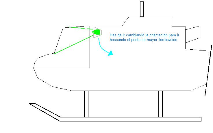 Me gustaría también iluminar un poco la cabina, con algún led verde que de impresión de navegación nocturna pero no sé cómo hacerlo. Si lo pongo en la consola de mandos me ilumina el fondo de la cabina, si lo pongo en el suelo me ilumina el techo. Para que iluminara bien el cuadro de mandos debería ir en el techo pero no puedo agujerear el techo porque los contactos sadrían hacia afuera, me explico?. ¿Qué le podría poner para que diera una luz ambiente?... me refiero no a un led, que ilumina una zona central más que el resto.