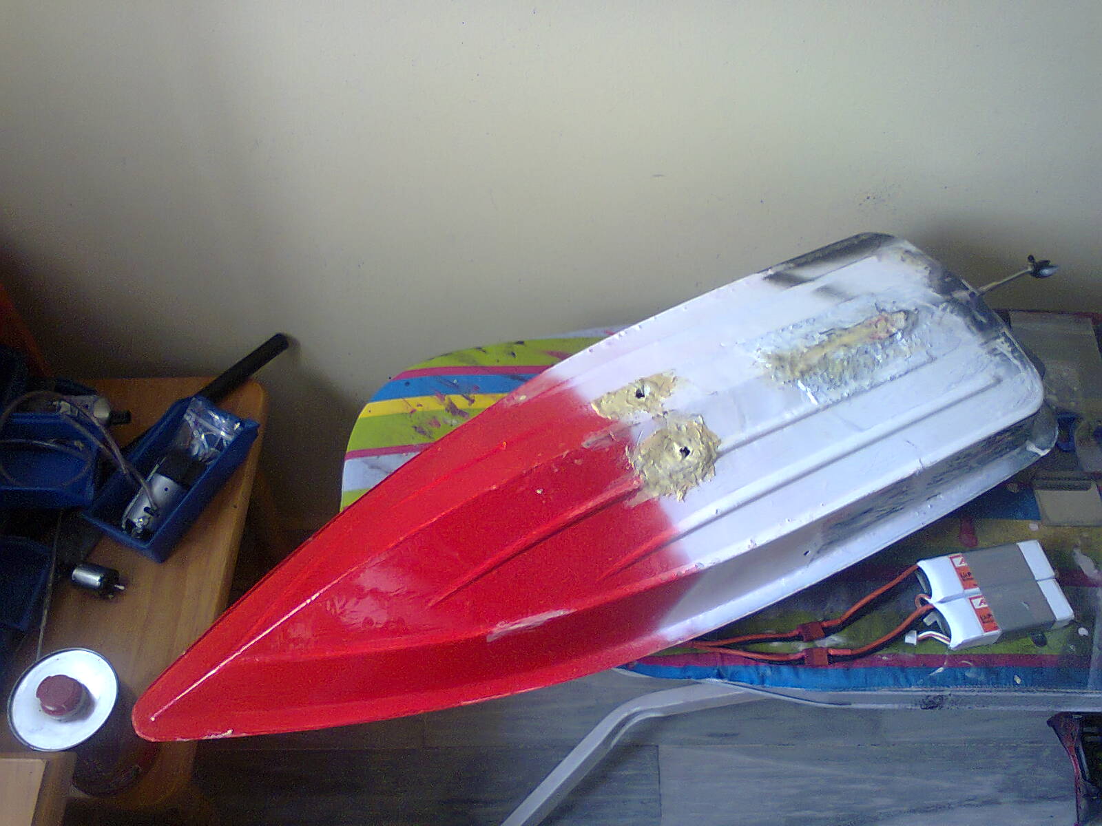 Hola buenas noches,soy fran de malaga leo mucho vuestros comentarios desde hace unos meses y me anime a modificar una lancha stormwind tipo yate que venia con reductora y una helice 42,la cosa es que le cambie todo solo me kede con el casco nada mas y el timon.ahora lleva uno motor b3670 de 1800 rpm con cardan directamente al eje,el casco mide 74cm las baterias ke tengo son de 3s y de 55c de descarga y otras de 3s y 25c,la lancha venia con eje drive dog asi ke le puse otro de M4,ahora ya no kemo nada pk lo tengo todo refigerado ah se me olvidaba el variador.es uno marino de 80 amp,la cosa es ke no consigo dar con el tipo de helice adecuado,la helice va totalemente sumergida por debajo del casco,primero he probado con una graupner serie k de 39 y para lipo de 3s es mucho y se calentaba el motor luego probe con una de 33 y nada de nada fatal muy mal,lo ultimo ke le he puesto de una serie k de 37,5 en la bañera parecia la caña pero cuando la solte en un pantano me lleve una de las mayores decepciones de mi vida jeje para ke corriera tenia ke darle mucho y lo ke note es ke el agua en vez de salir por detras del timon salia para arriba y pegaba en casco y toda esa potencia se desaprovecha.si alguien sabe un poco de helices sumergidas ke me eche un cable xfi,no tengo fotos pero a ver si estos dias puedo subirlas,lo ke busco no son 80 ni 60 kmh solo me conformaria con unos 30 sin ke sufra mucho.pesa unos 2,5kg.muchas gracias un saludo a todos.