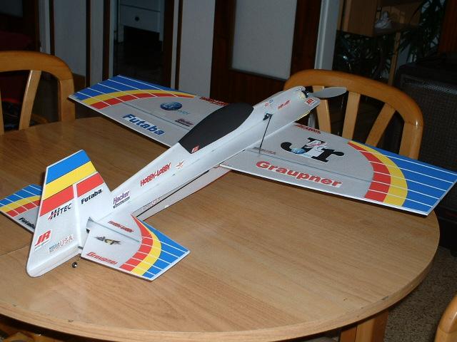 le he ampliado la deriva unos 3 centimetros para facilitar segun k maniobras a baja velocidad.... el peso en orden de vuelo con dos lipos de 600milis es de 210gramos las varillas son de carbono de 6 milimetros partidas en 6 trozos osea finisimas. pero el fuselaje no se retuerce lo mas minimo.