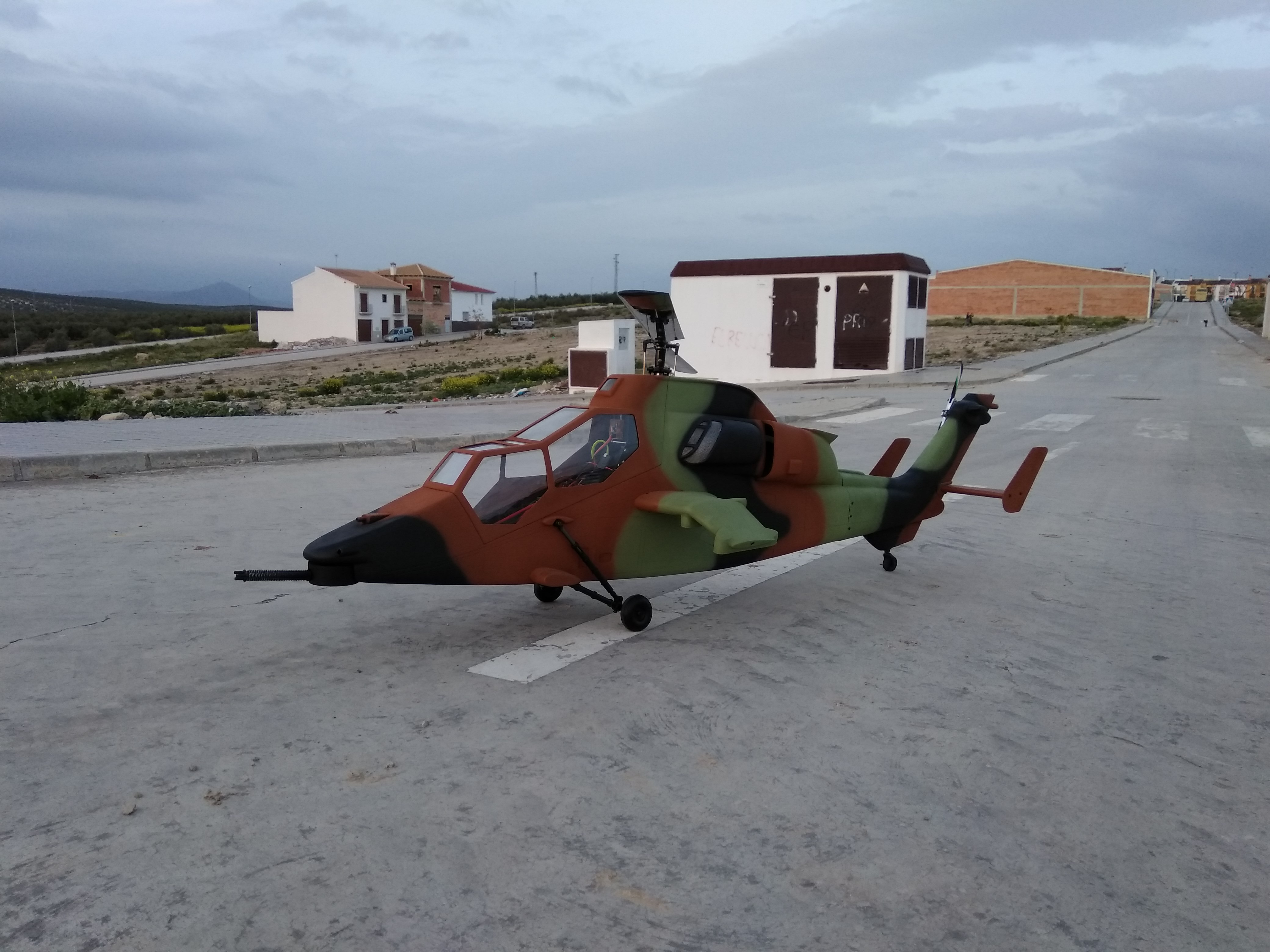 Buenas compañeros os presento mi maqueta va montada con piezas de align 600 adaptadas a un chasis que trae el kit con un tamaño final de 1.700cm,me ha costado unas pocas de horas de pintura y aerógrafo para dejarla lo más parecida posible a la de nuestro ejército Español aunque todavía le faltan algunos detalles que poco a poco iré acabando y retocando,espero que os guste en breve subiré más fotos en vuelo saludos