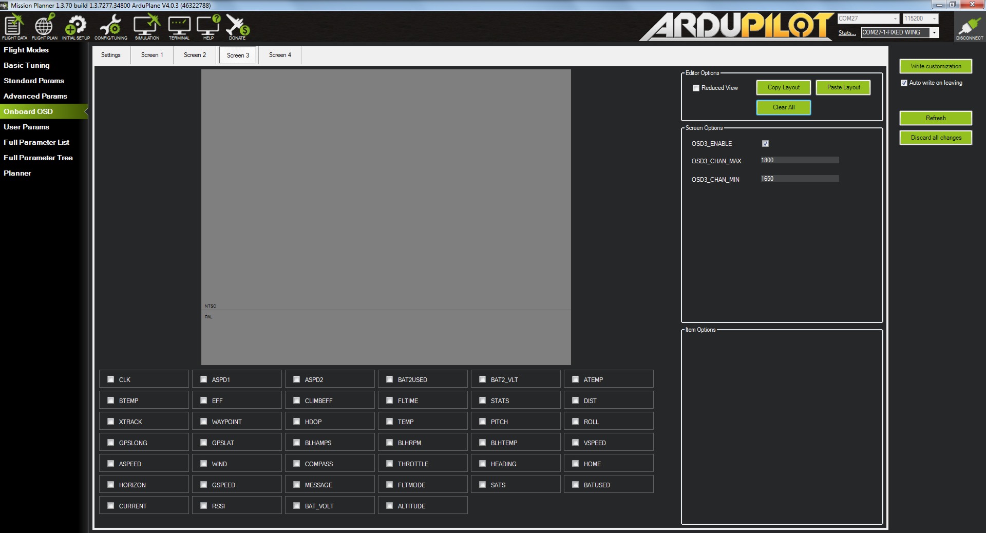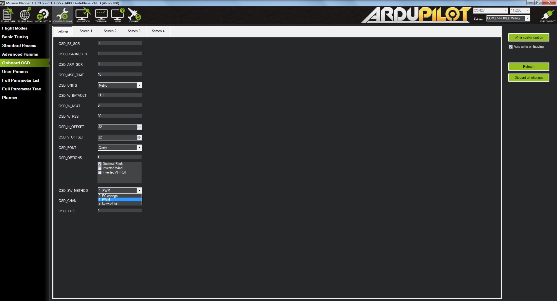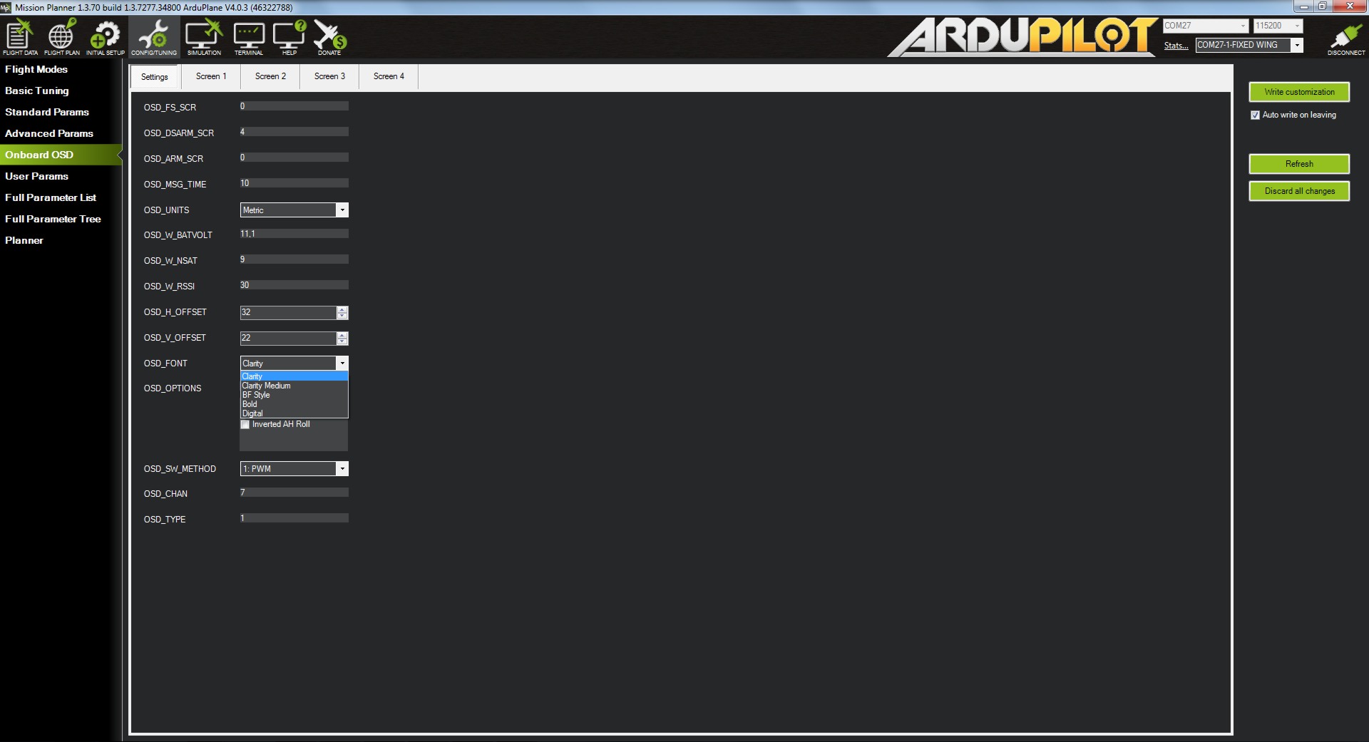 - OSD_ARM_SCR: Indicamos la pantalla que se nos mostrará cuando armamos nuestro avión. Por defecto 0 deshabilitado.