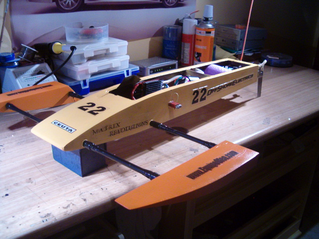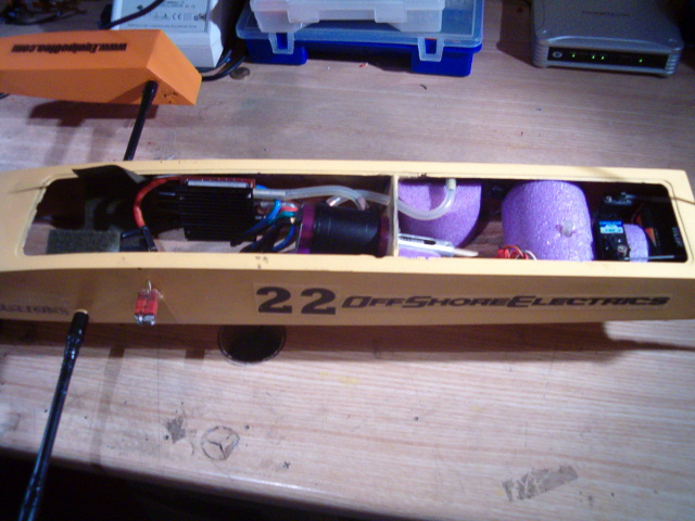 La bocina sale completamente pegada y paralela al pantoque, espero poder montar una helice al menos de 42mm.
